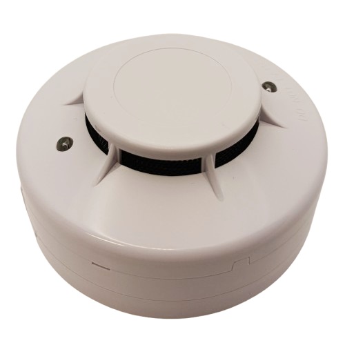 Smoke sensor, with base, for multiple-station system, 4-wireFeatures:Smoke detector with a photoelectric camera that detects smoke early from any direction.The detector is designed for integration into multiple-station security system.The device operates at the 4-wire connection allows for simple and reliable connection to the system.The base is designed for mounting onto electrical junction boxes without additional adapters.In standby mode, the detector’s operation indicator light flashes every 32 seconds.When smoke is detected, the red LED light lights up and a signal is transmitted to the security system alarm.Technical data:Type: photoelectric smoke detector.Sensitivity: 0.08 – 0.16 dB/m.Voltage: DC 9V (min.) – 35V (max.).Standby current: <80uA.Alarm current: <40mA.Operating current: max. permissible 60mA.Alarm indication: red LED on.Alarm output: relay output.Indicator cycle time: 32 sec.Operating temperature: 0°C~+50°C.Ceiling mounting.Dimensions: Ø99mm x 51mm.Weight: 147g.Color: white.Certificates: EN54-7.Warranty: 24 months.